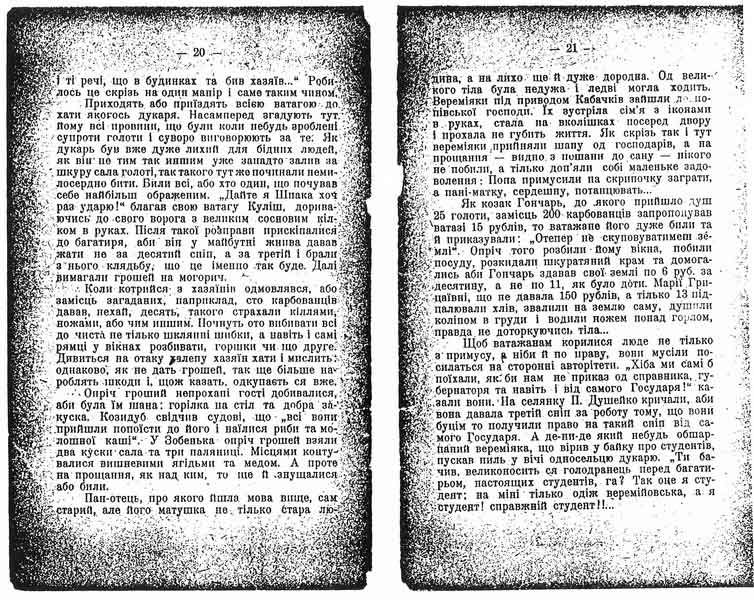 Натомісць скількось раз на рік горять тепер хати, стіжки та стоги селян-дукарів. То біднота палить богачів за те, що ті в жнива дають дешевий сніп, що ті позаводили самокоски і не нуждаються в косарях. То голота так бореться за свої інтереси...